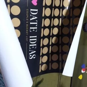 I purchased this for a friend who's been in a relationship for some time and is looking to give their stagnant relationship a nudge forward. The packaging was excellent, with the item neatly rolled and completely undamaged. It also arrived swiftly, which was a pleasant surprise. The material is a sturdy paper, resilient and not prone to tearing easily.